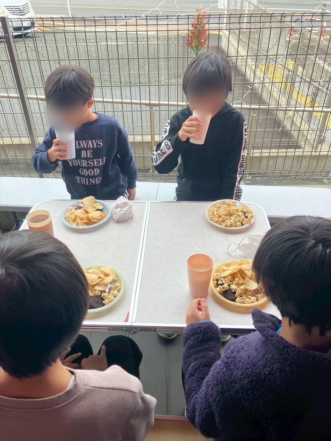 ポップコーン・ポテチ・オレオ・ドーナツ・ジュースと最高パーティーが出来ました🤣👌👌
