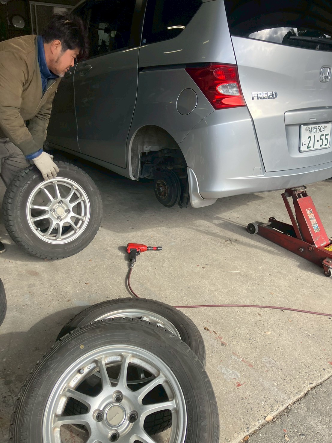スタッドレスタイヤへ交換する為、