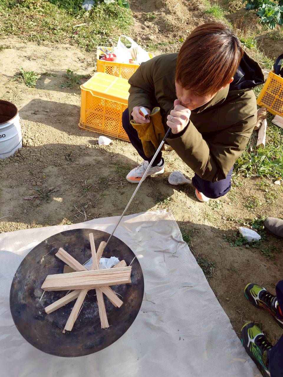 JOY畑にて薪をセット🪵