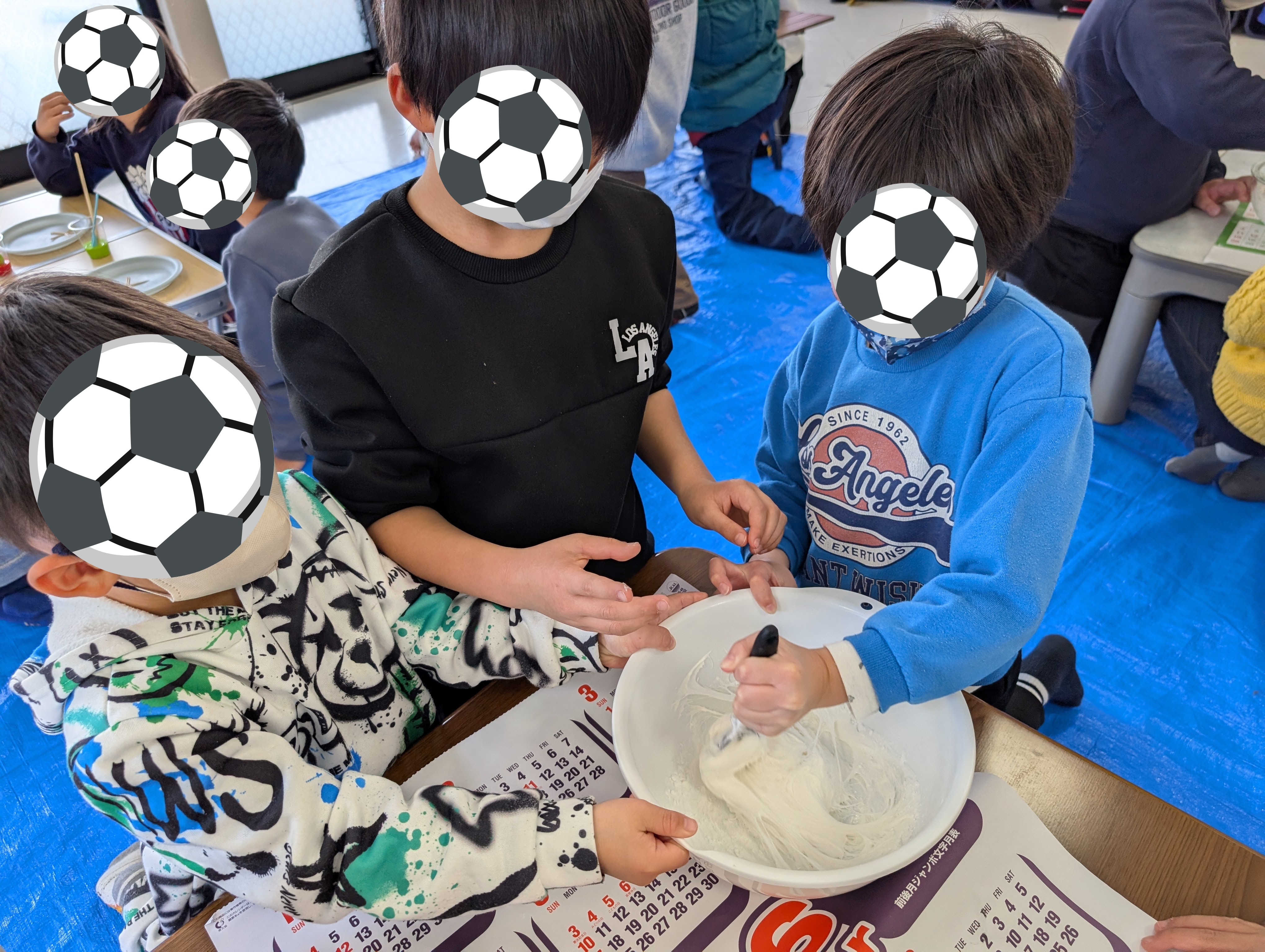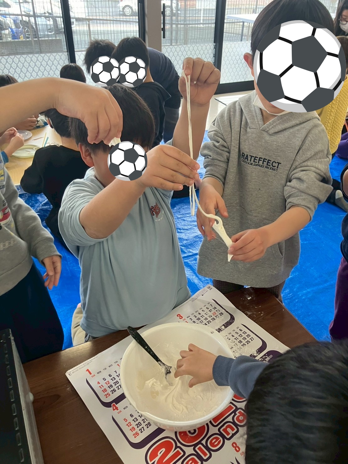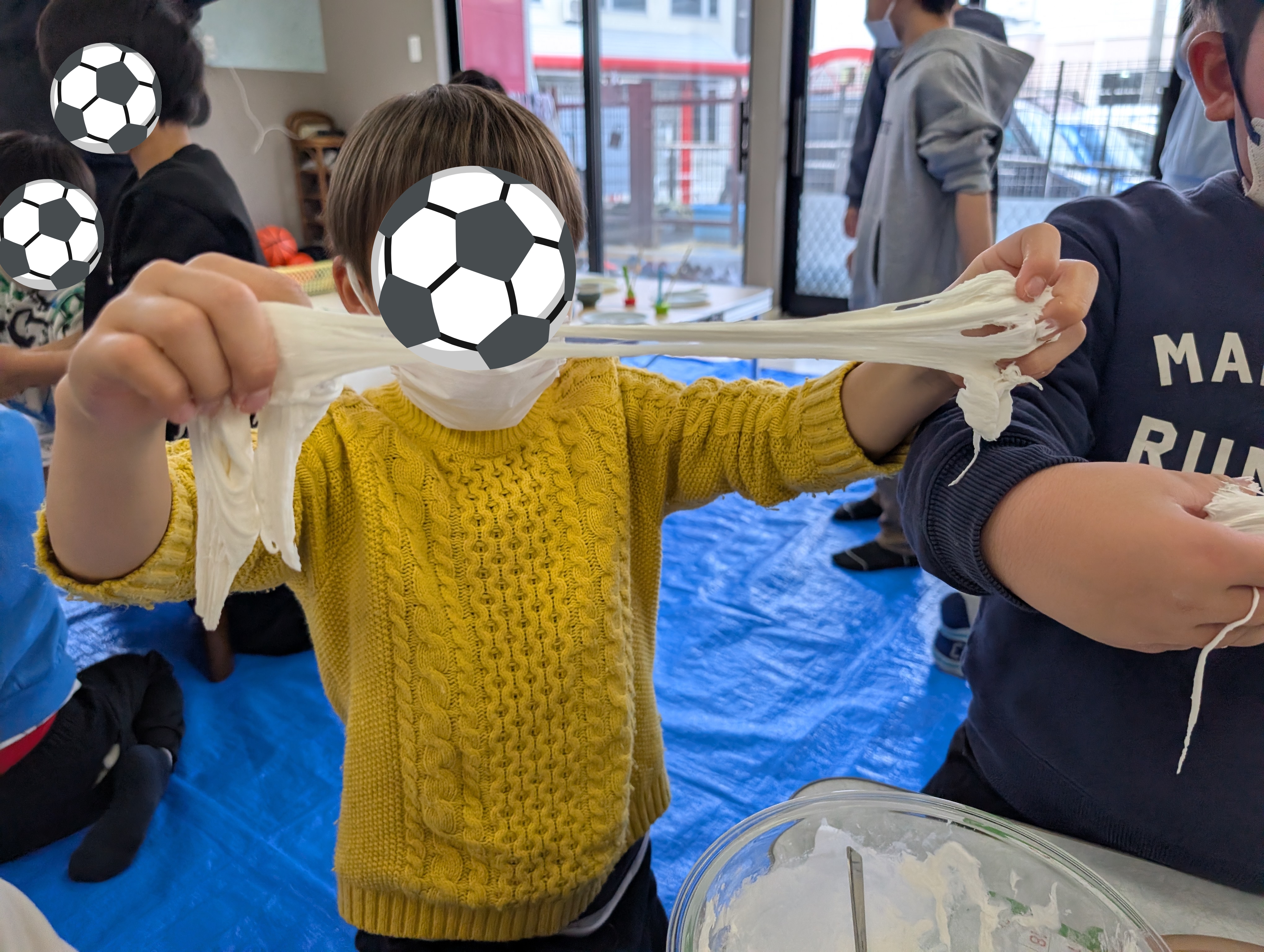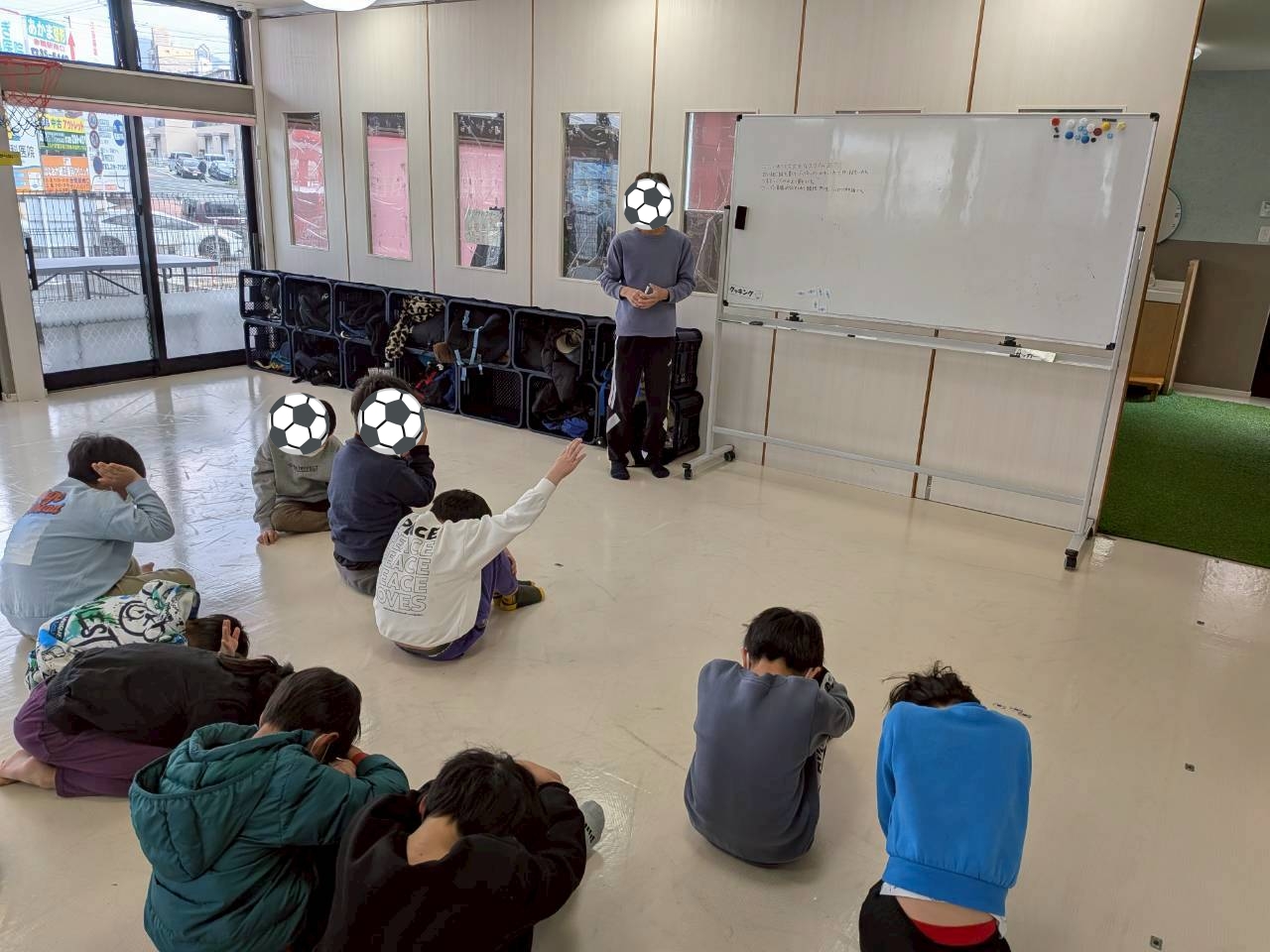 外を見ると、雨も止み「サッカー行けるよね😉」と子ども達😄