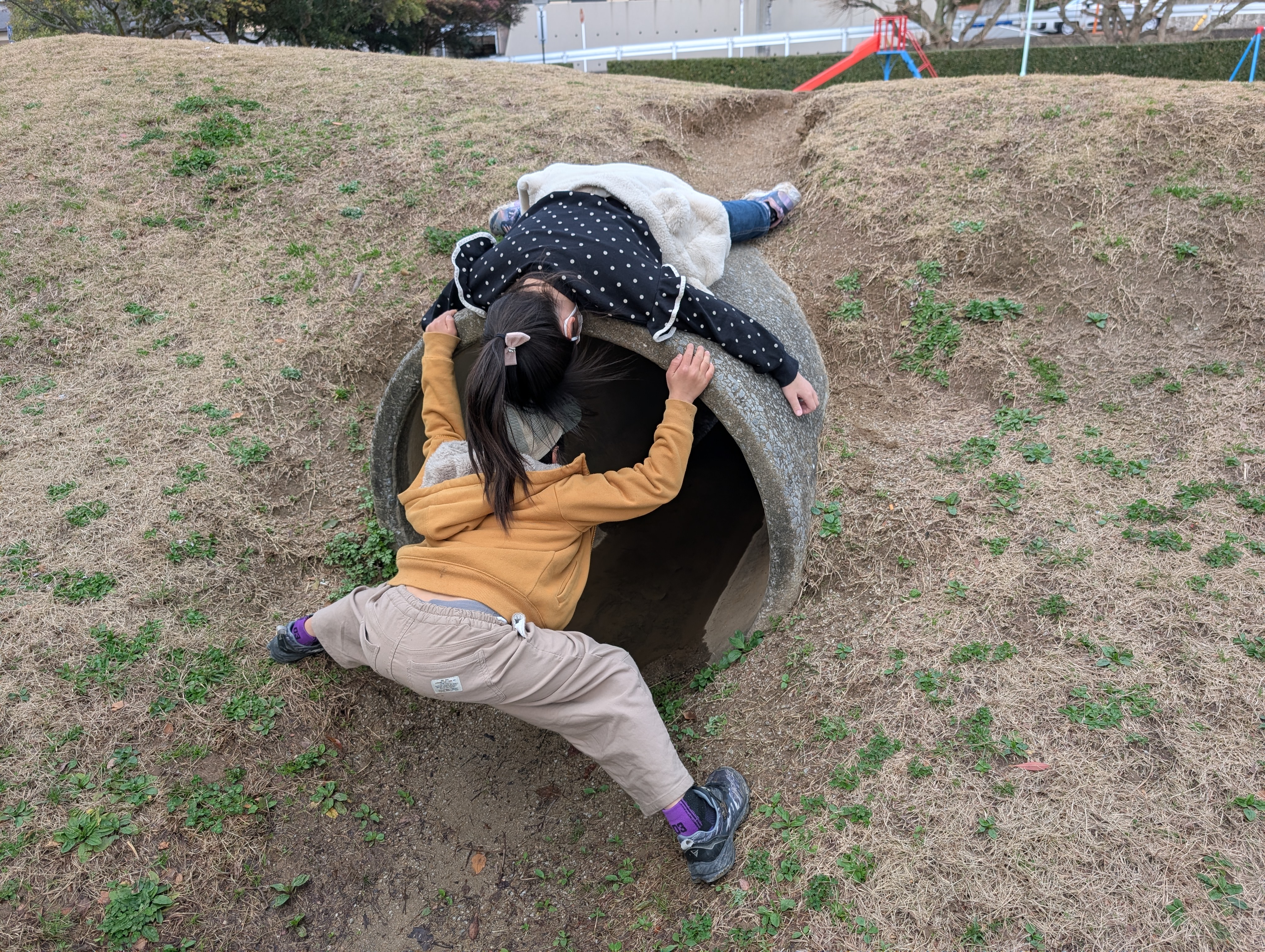 土管の中を探検したり、それぞれ好きな遊びを見つけて楽しみ🤩