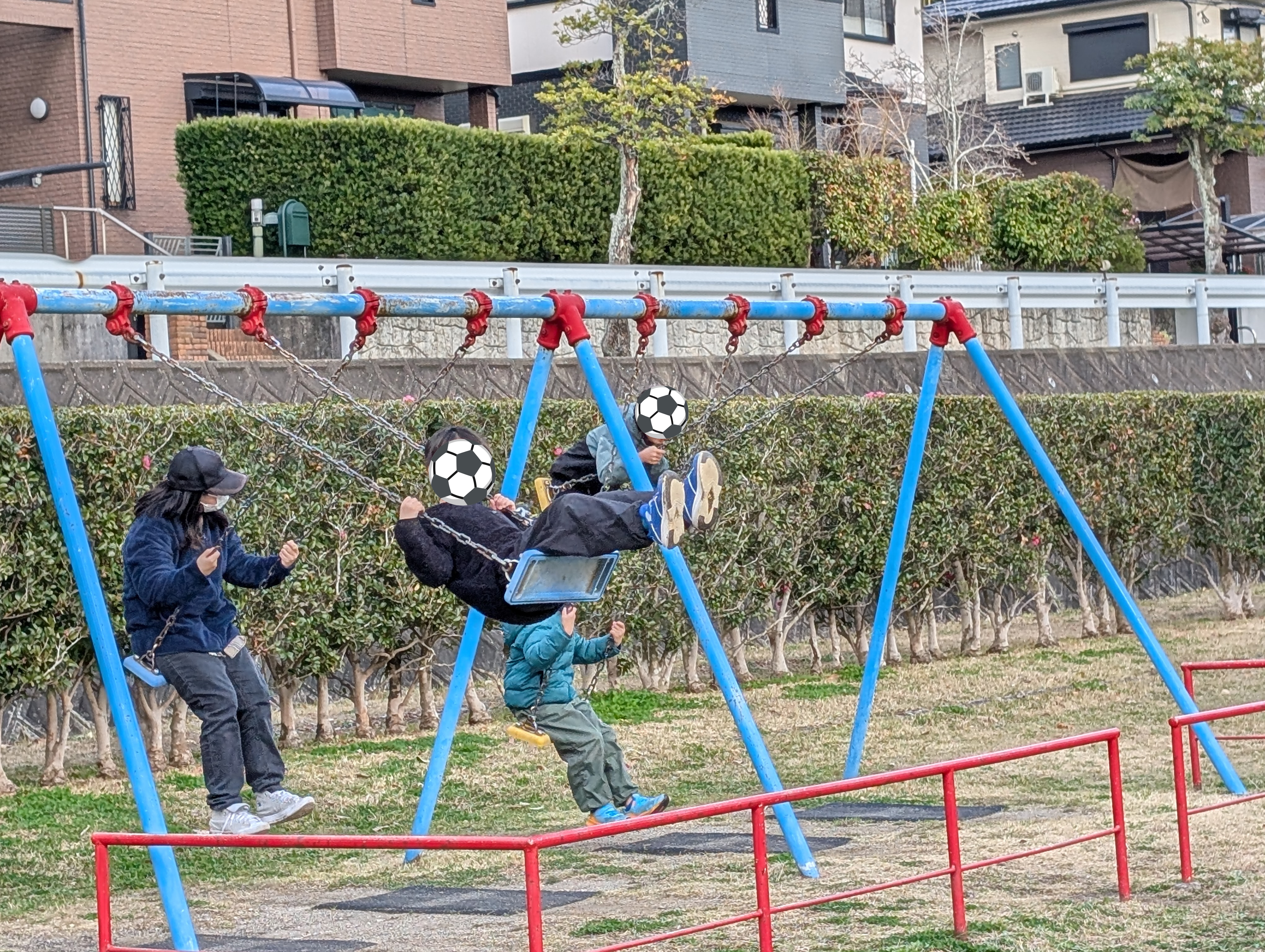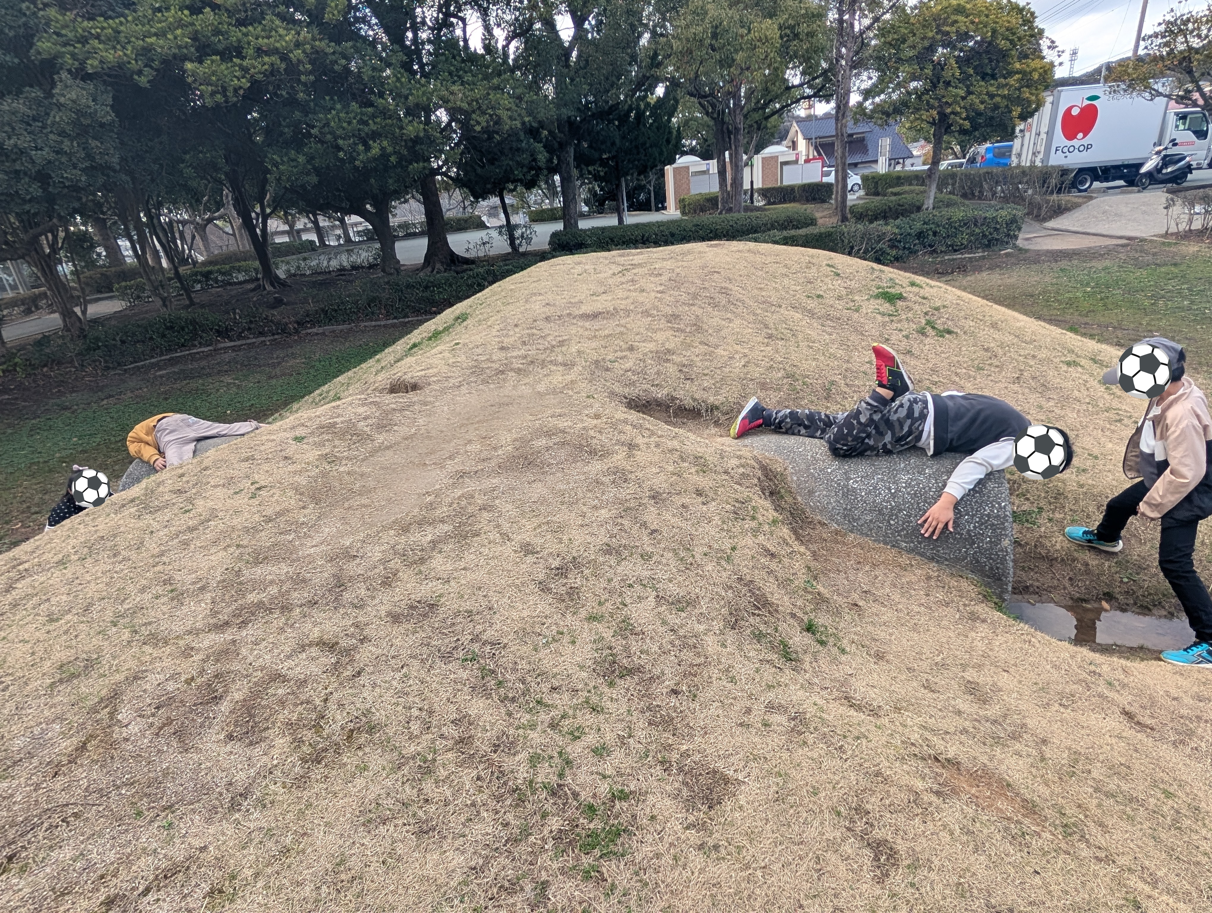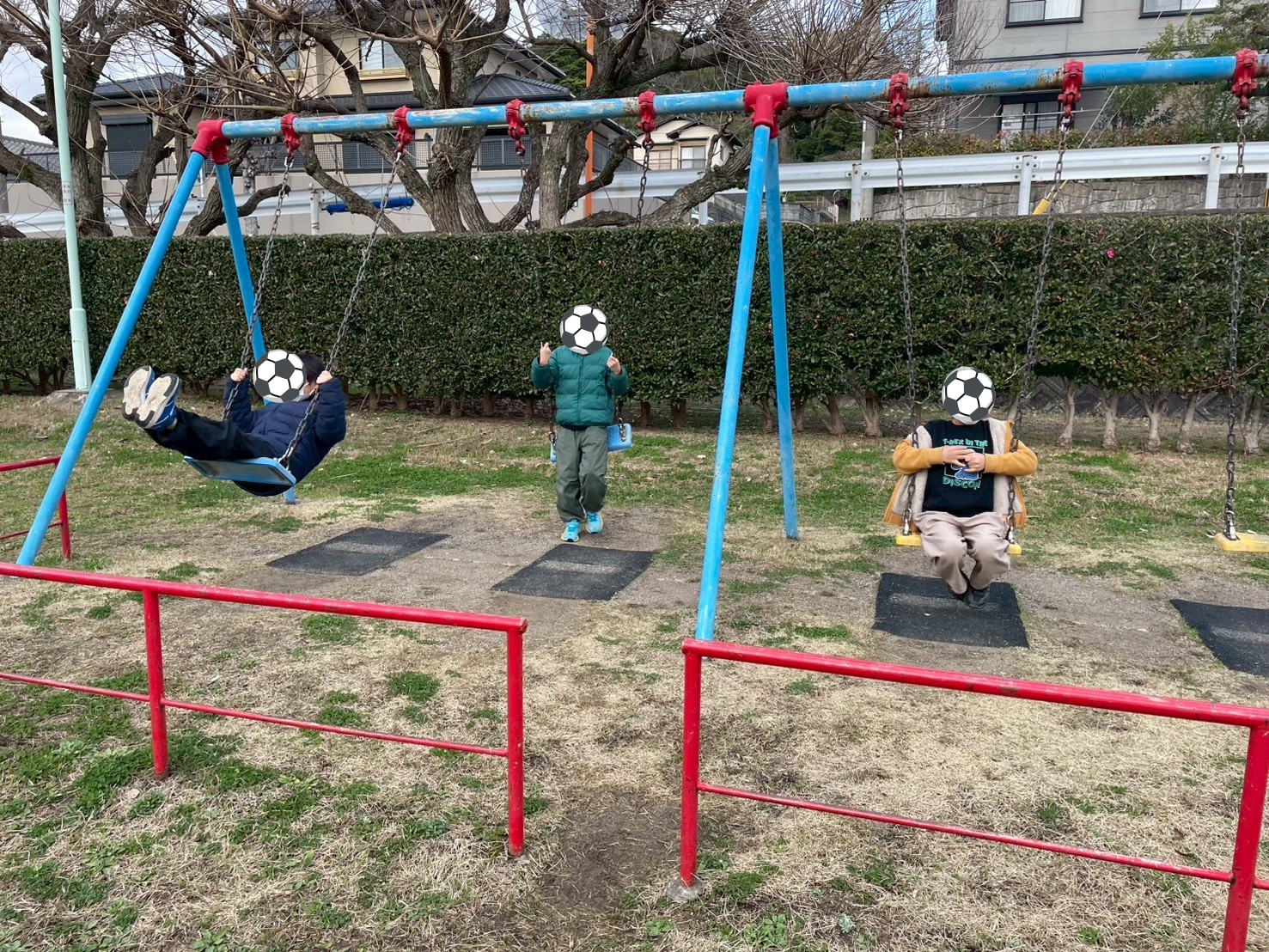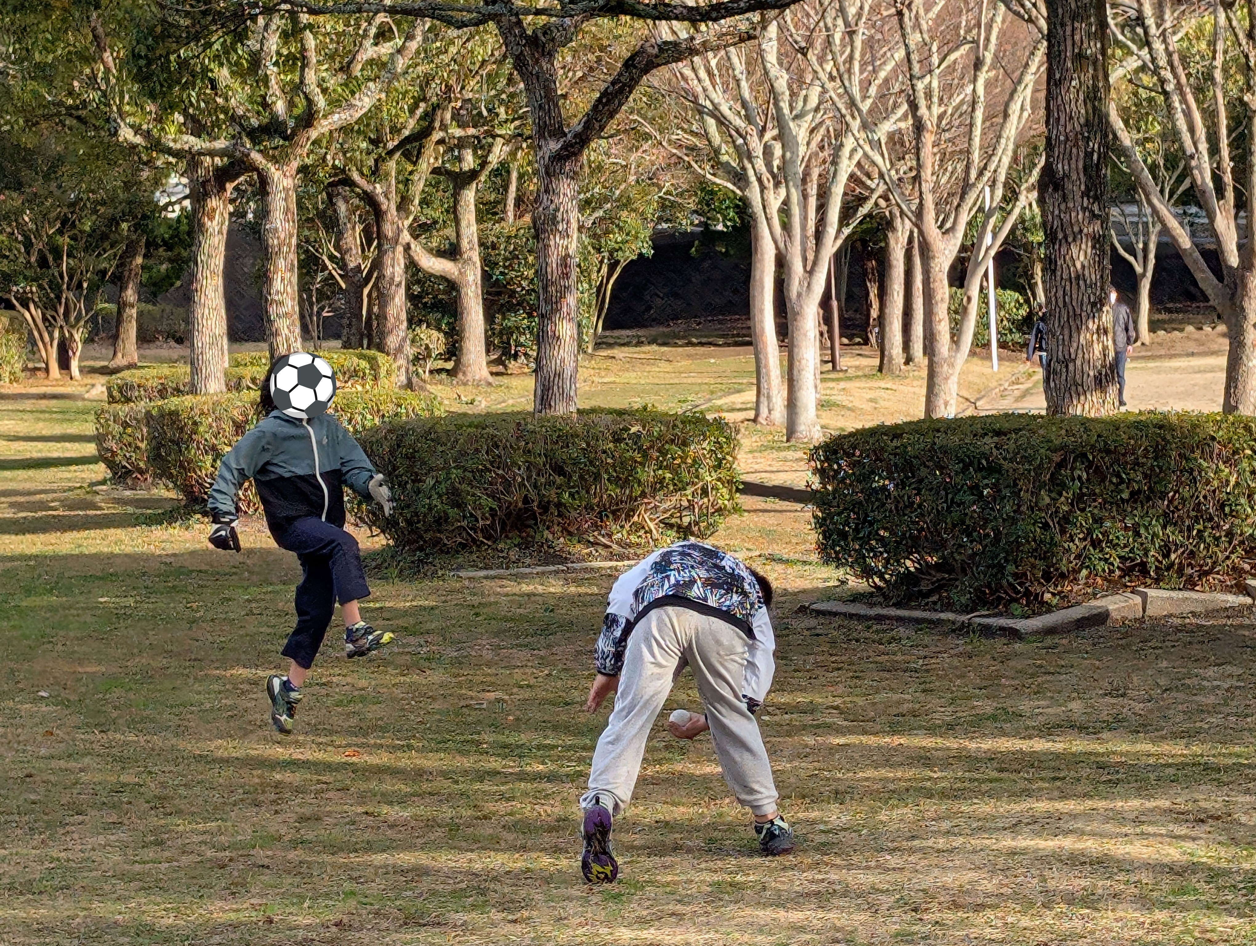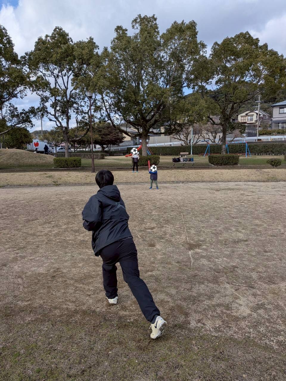広い公園では、サッカー⚽
