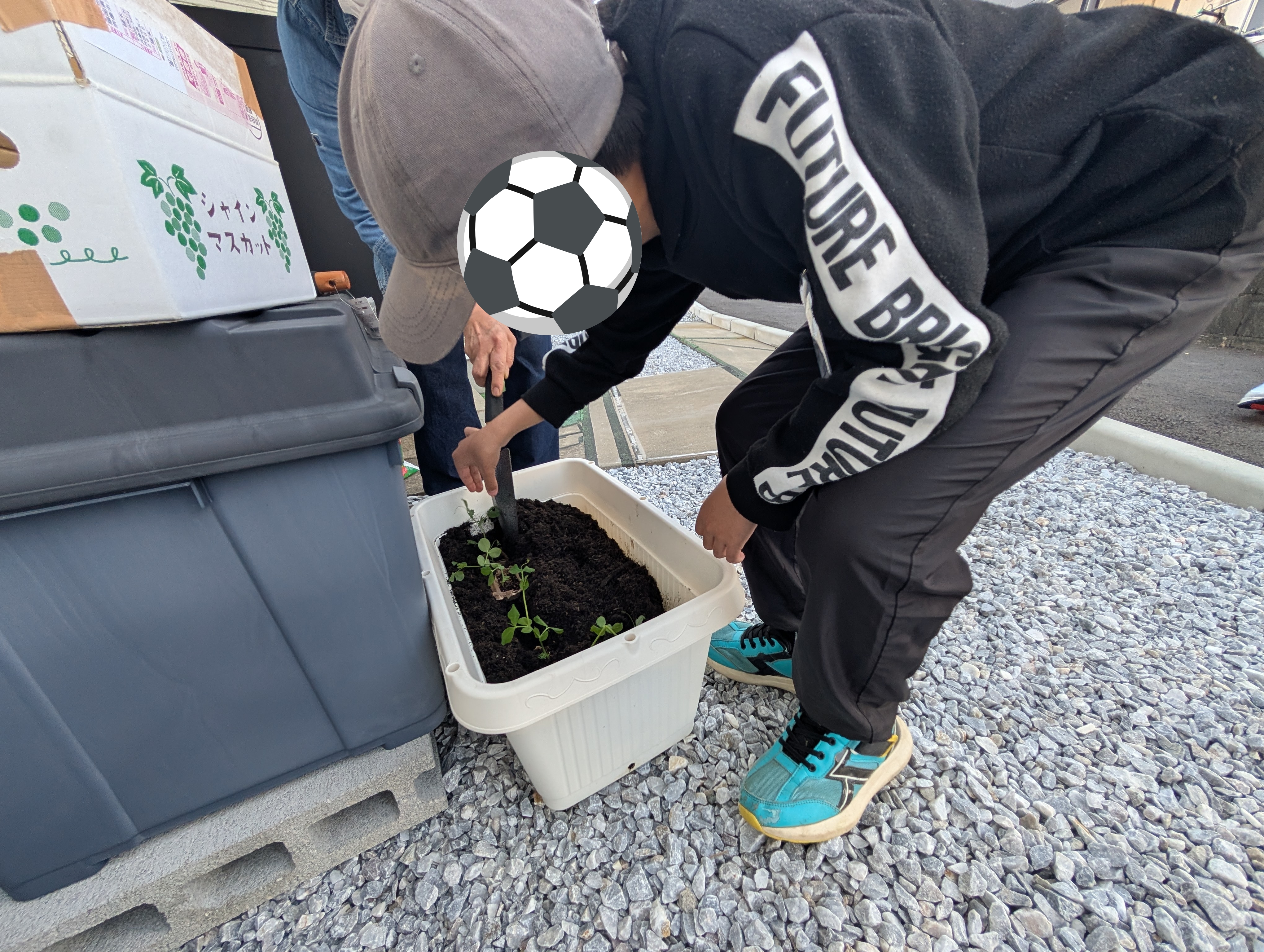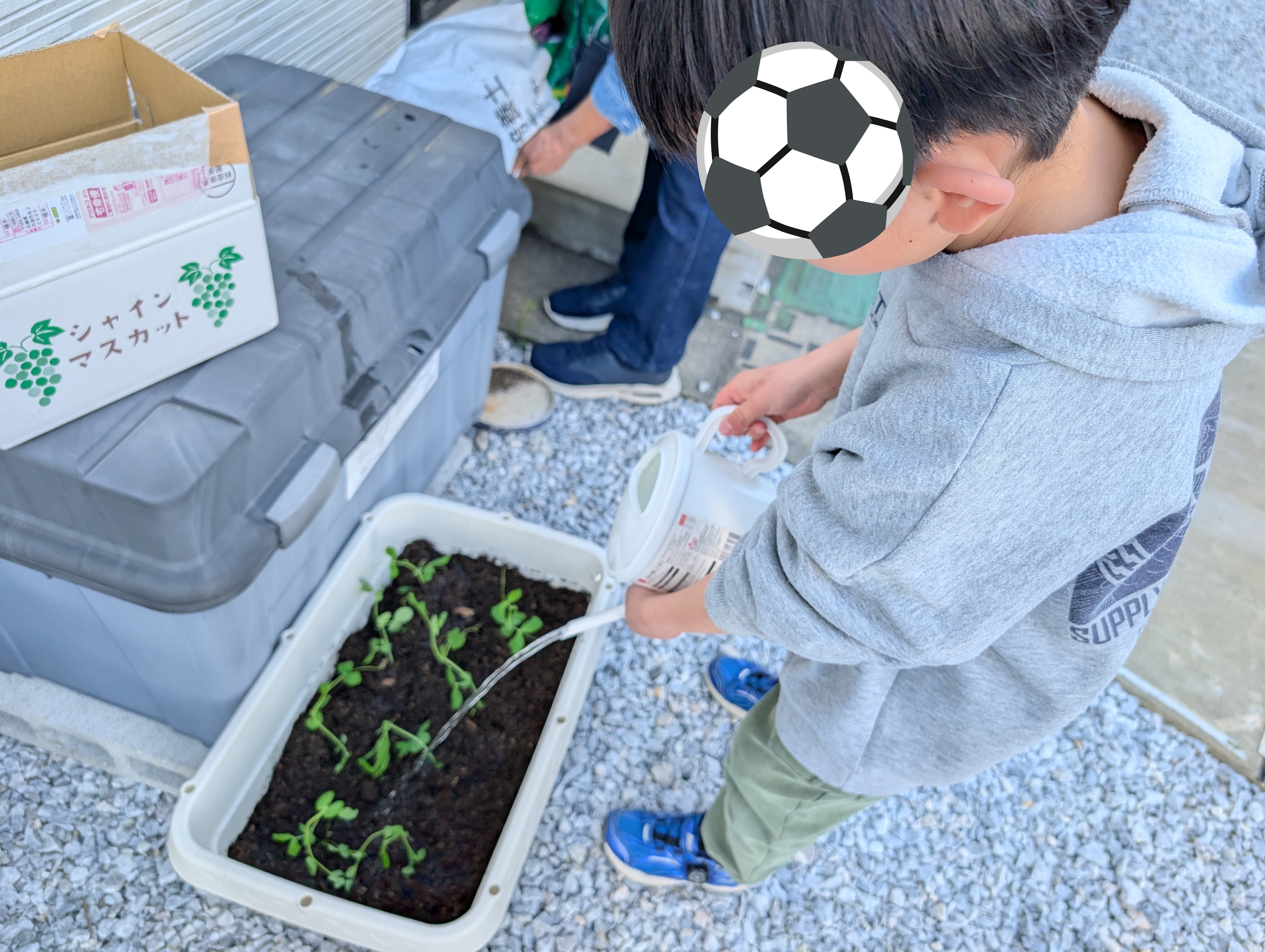 「美味しくな〜れ🎶美味しくな〜れ🫛」呪文を唱えて水やり😊✌️
